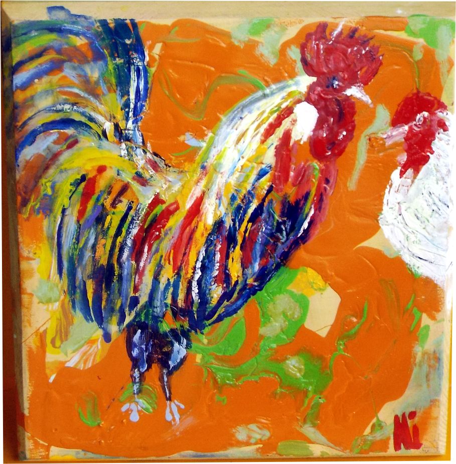 "My Rooster's Collection" Hand-painted By: Alida Martinez -Ali-